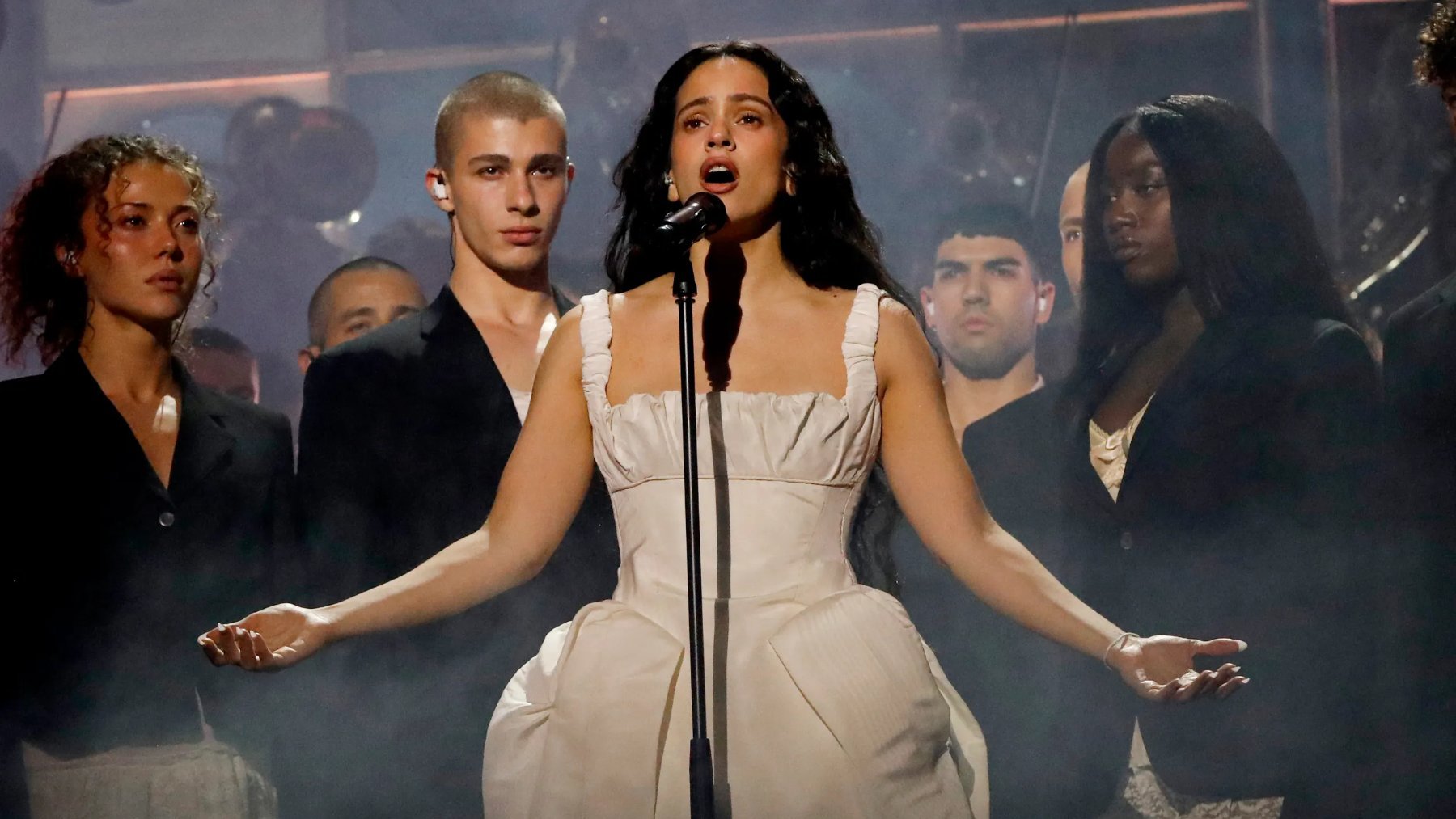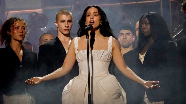El escenario se iluminaba y veíamos a una Rosalía en medio de un gentío que formaban coros, músicos y bailarines. El comienzo de la canción ponía al público británico con los pelos de punta y sí, la catalana no dudó en hacer muestra de su gran voz. Cantó el comienzo de la ópera como si de la nada saliera y dio una lección de talento. Una actuación que podría haber sido en los premios Goya y, así, hubiese estado más animada.