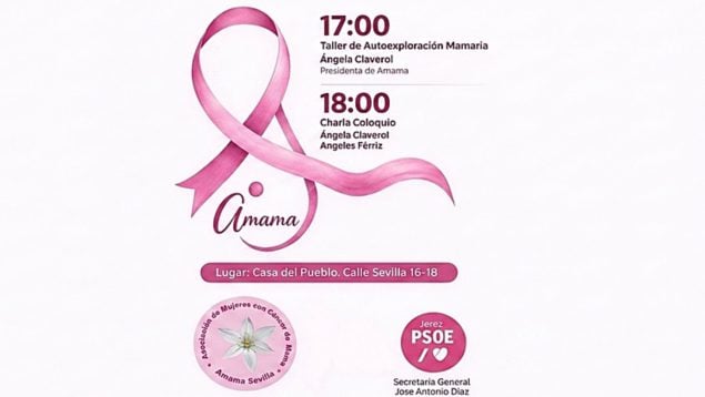 El cartel del acto de Jerez refleja de forma visible esa cercanía, al incluir los emblemas de Amama y del PSOE en una misma convocatoria. Dentro de la jornada, la presidenta del colectivo, Ángela Claverol, impartirá un taller de autoexploración mamaria. Después participará en una charla coloquio con Ángeles Férriz, diputada socialista en la última legislatura andaluza hasta la disolución del Parlamento acordada por Juanma Moreno.