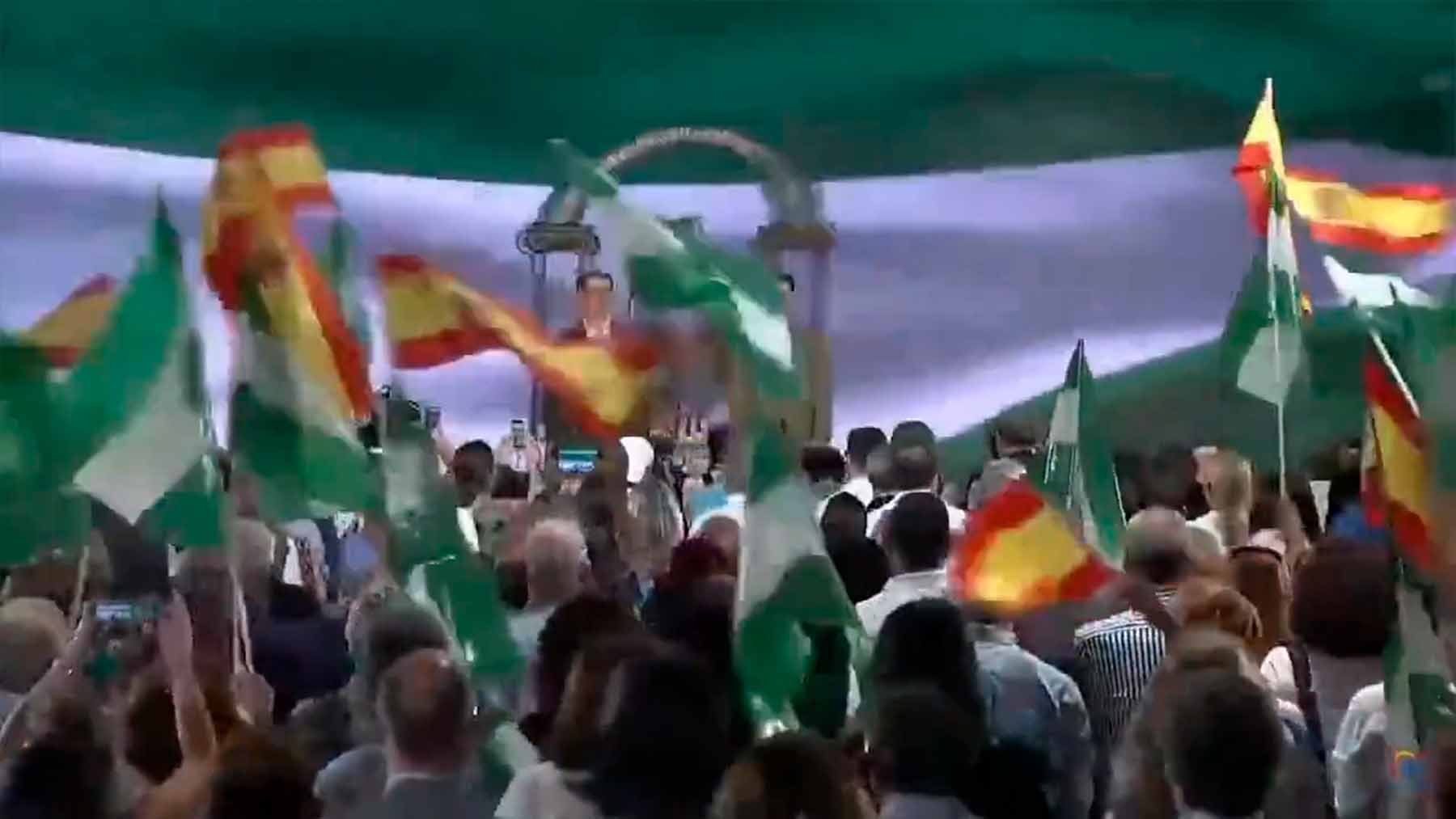 Este domingo, Sevilla se ha convertido en la capital del PP. El presidente nacional del PP, Alberto Núñez Feijóo, y el presidente andaluz y candidato del PP a la Junta, Juanma Moreno, han abarrotado un acto de campaña en el que se ha vivido un emocionante momento: cuando los afiliados populares han entonado a capella el himno de Andalucía.