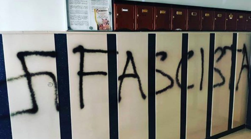 La extrema izquierda marca con una esvástica y una pintada de ‘fascista’ la casa del portavoz de Vox Huelva