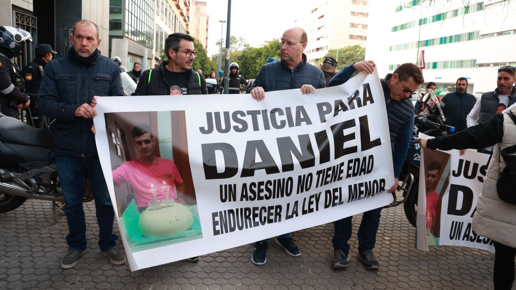 El Juzgado de Menores de Sevilla acoge este martes, 24 de febrero, la primera sesión del juicio contra el presunto autor del homicidio de Daniel, el chico de 17 años que murió apuñalado en la madrugada del 2 de julio en el poblado Alfonso XIII, en Isla Mayor. A la entrada del edificio, sus padres han convertido el arranque de la vista en un acto de memoria y de presión pública: piden «justicia» y reclaman que se endurezca la Ley de Responsabilidad Penal del Menor.