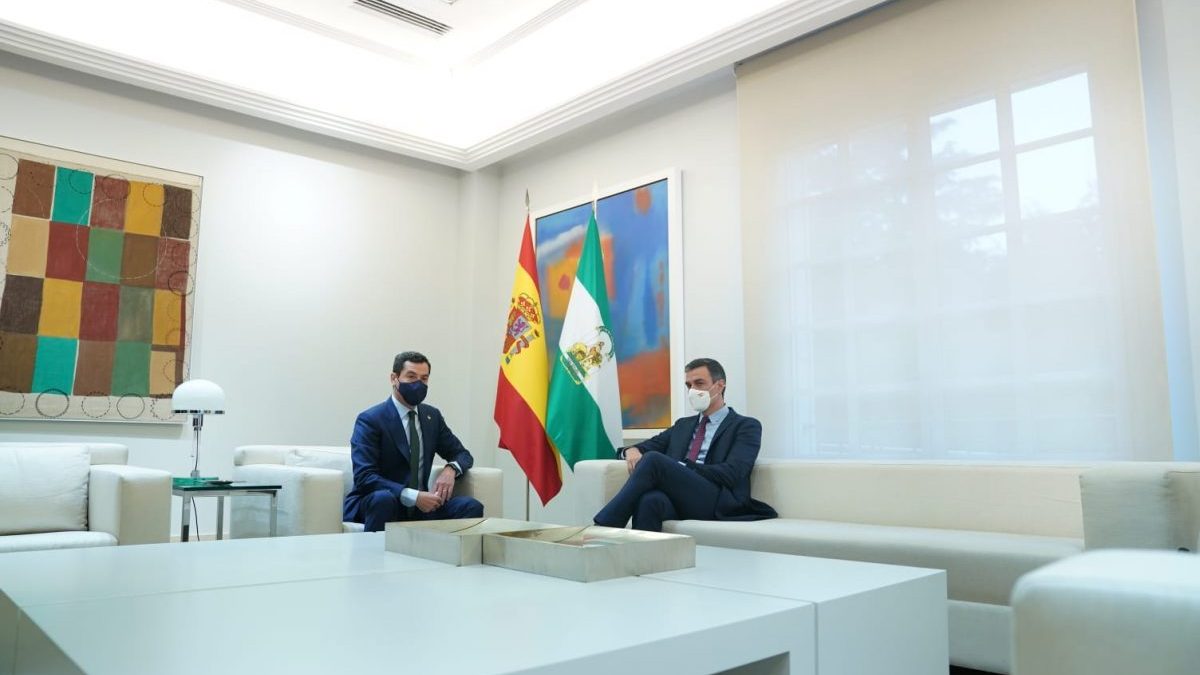 La reunión con @sanchezcastejon ha sido cordial. Le he pedido una financiación justa, un reparto equilibrado de fondos europeos, bajar el IVA al Turismo y una mesa bilateral en la que alcancemos acuerdos para que #Andalucía reciba el trato que merece. Espero que haya resultados. pic.twitter.com/HG5JBXM2G1