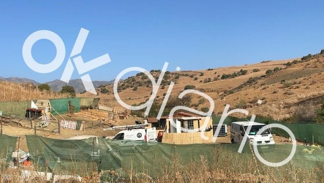 Aparcadas junto a la finca, vallada, se encontraron dos furgonetas, una de ellas con las puertas abiertas y rotulada con el nombre de una empresa de pintura cuyo rastro es difícil de seguir.