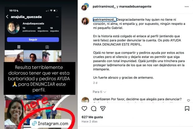 La madre del Pescaíto ha publicado capturas de pantalla del perfil (@anajulia_quezada) y ha pedido apoyo explícito para que la red social elimine la cuenta ante el «terrible dolor» que le provoca «ver esta barbaridad».