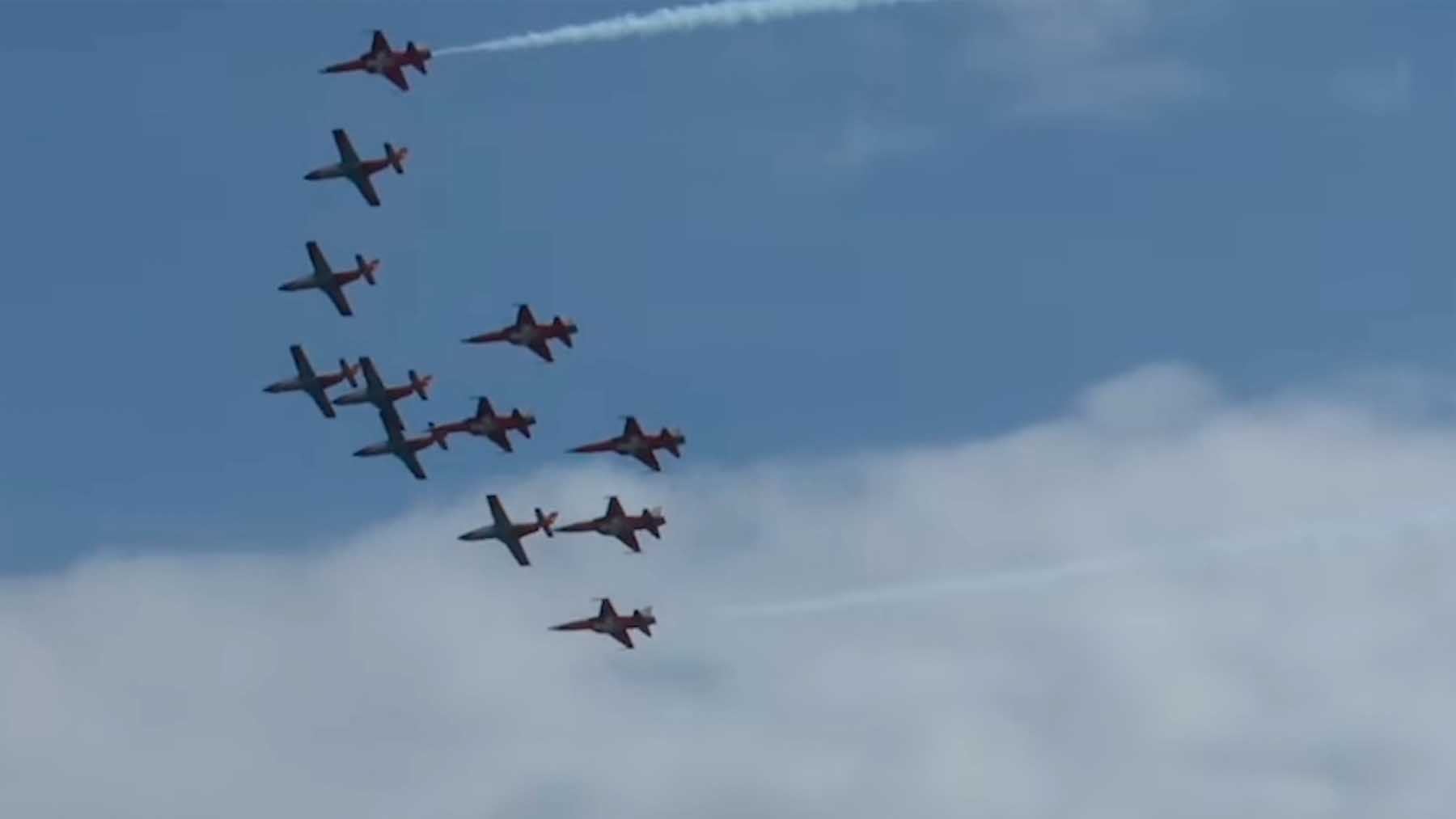 En el evento participan 40 aeronaves y este año se ha marcado un hito histórico con la primera aparición de las patrullas suizas en suelo español.