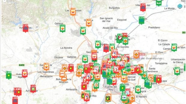 Mapa del precio de la gasolina en Andalucía