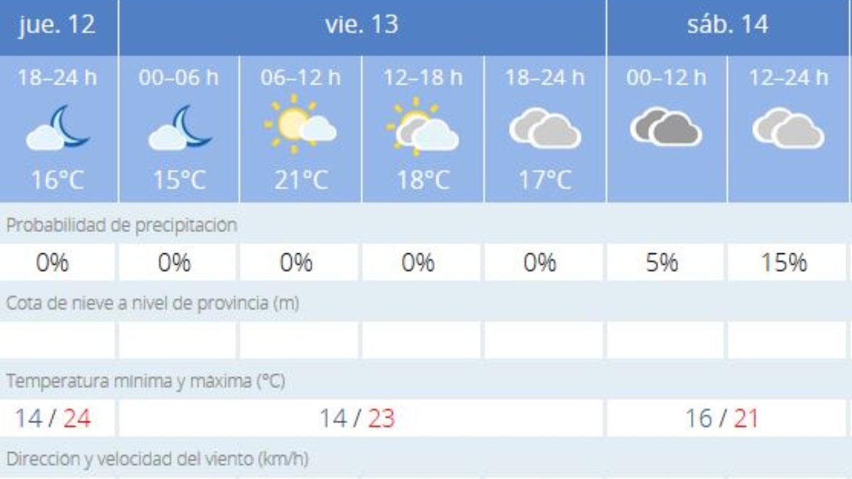 El sábado permanecerá nublado, el domingo las nubes seguirán pero con menor intensidad y las temperaturas permanecerán estables. A principios de semana el clima estará dominado por el sol. Las temperaturas pueden presentar algún ligero aumento pero es imperceptible.