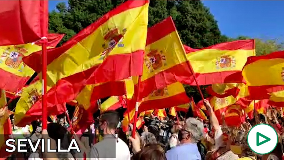 Sevilla ha sido la ciudad de Andalucía en la que más éxito ha tenido la llamada de Vox para que todos salieran a la calle, con su bandera de España, para pedir la dimisión de Pedro Sánchez. Varios cientos de personas se reunieron de este modo bajo el Puente de Triana para celebrar el Día de la Hispanidad, una llamada realizada en todas las ciudades andaluzas por Vox en la que Sevilla ha despuntado.