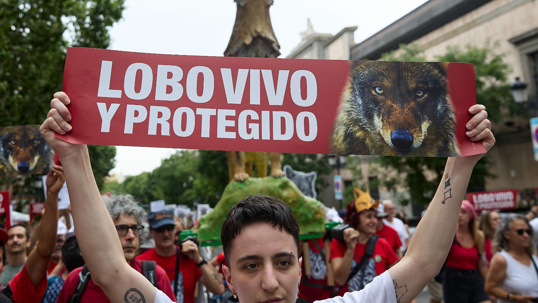 Manifestación de grupos ecologistas para exigir la protección del lobo ibérico. (Foto: Europa Press).
