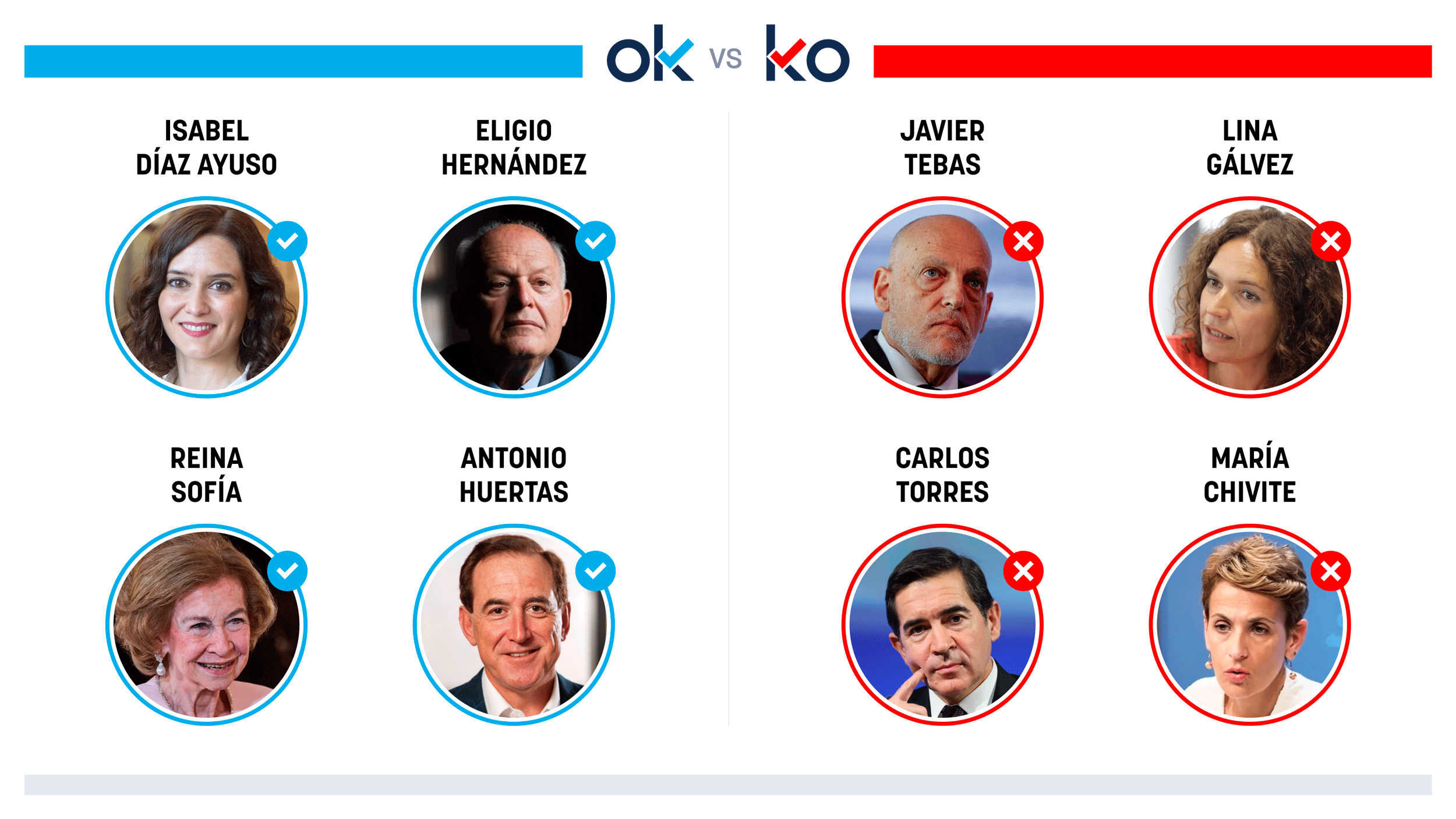 OK: Fidel CadenaPorque este fiscal del Supremo pide máximo rigor técnico para que la Justicia no se reforme por intereses partidistas.OK: Amancio OrtegaPorque su sociedad Pontegadea ha comprado un...