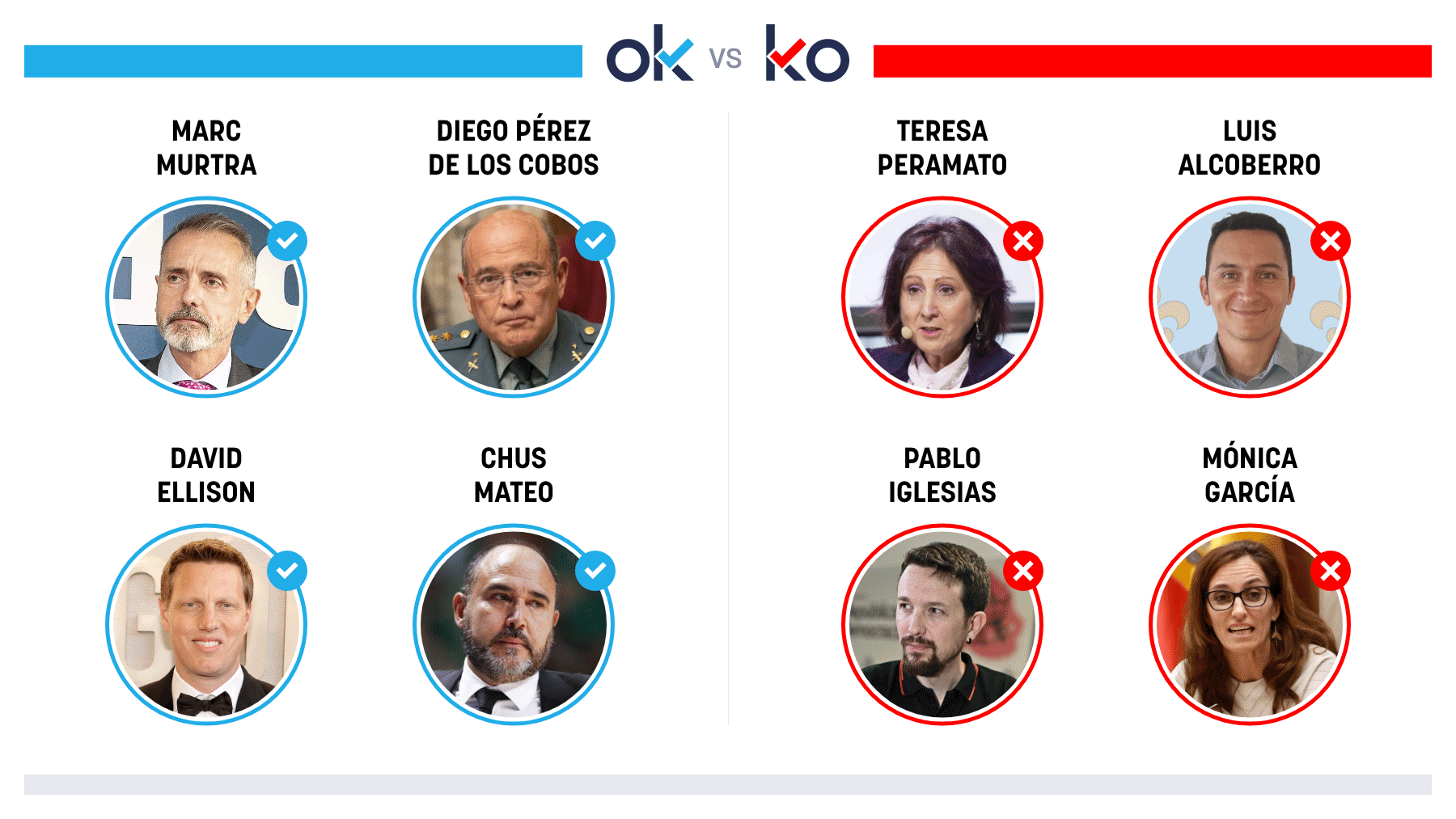 OK: Marc MurtraPorque Telefónica negocia la compra de la alemana 1&1 de forma amistosa para cumplir su plan estratégico.OK: Diego Pérez de los CobosPor subrayar que «ni policías ni...