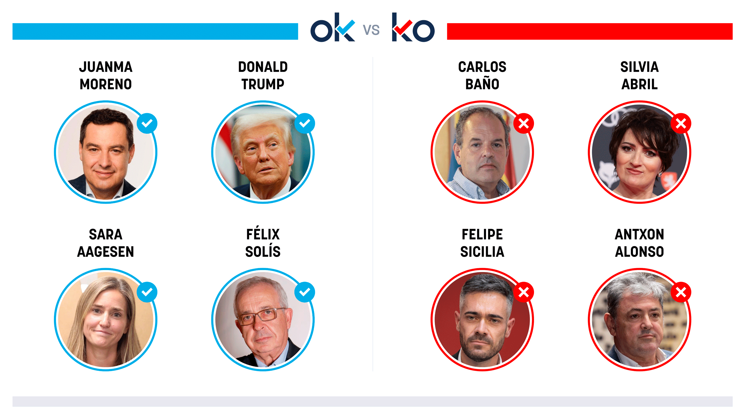 OK: Juanma MorenoPorque la Junta de Andalucía facilitará al niño con piel de mariposa el tratamiento que le niega la ministra Mónica García.OK: Donald TrumpPor lograr que la dictadura...