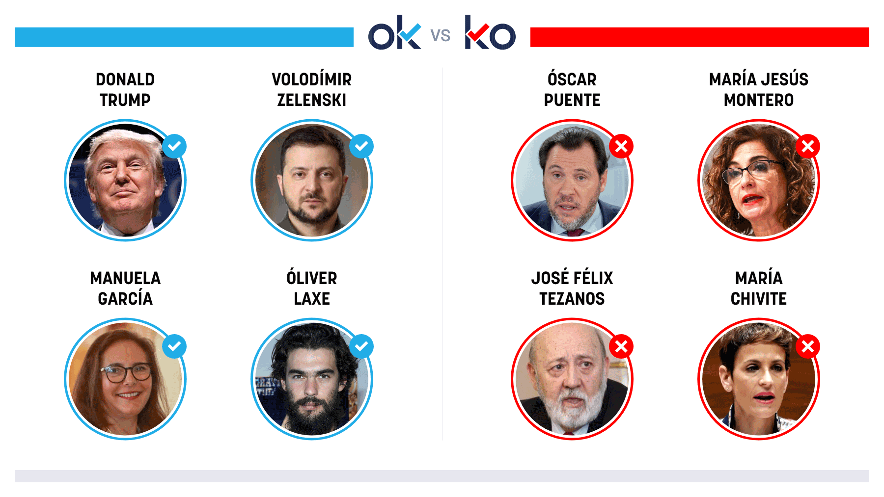OK: José Luis Martínez-AlmeidaPor la espectacular y novedosa Cabalgata celebrada en el centro de Madrid.OK: Juanma MorenoPorque Andalucía lideró el descenso del paro en 2025 con su mejor cifra...