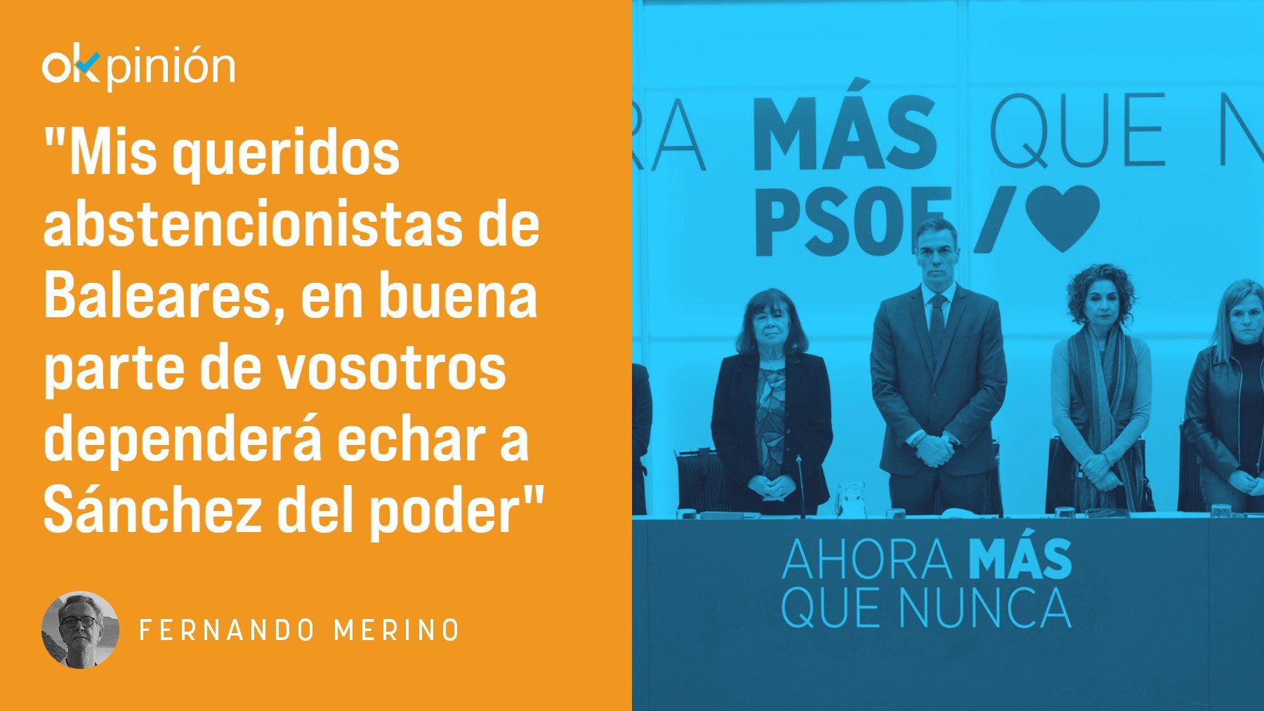 Mis queridos abstencionistas de Baleares, atendiendo a lo reincidentes que son los miles de votantes socialistas y que probablemente no cambiarán el sentido de su papeleta, en buena parte de vosotros dependerá echar a Pedro Sánchez del poder, aquí en clave de tres diputados socialistas actualmente sentados en los escaños del Congreso y alguno que otro más en el Senado.