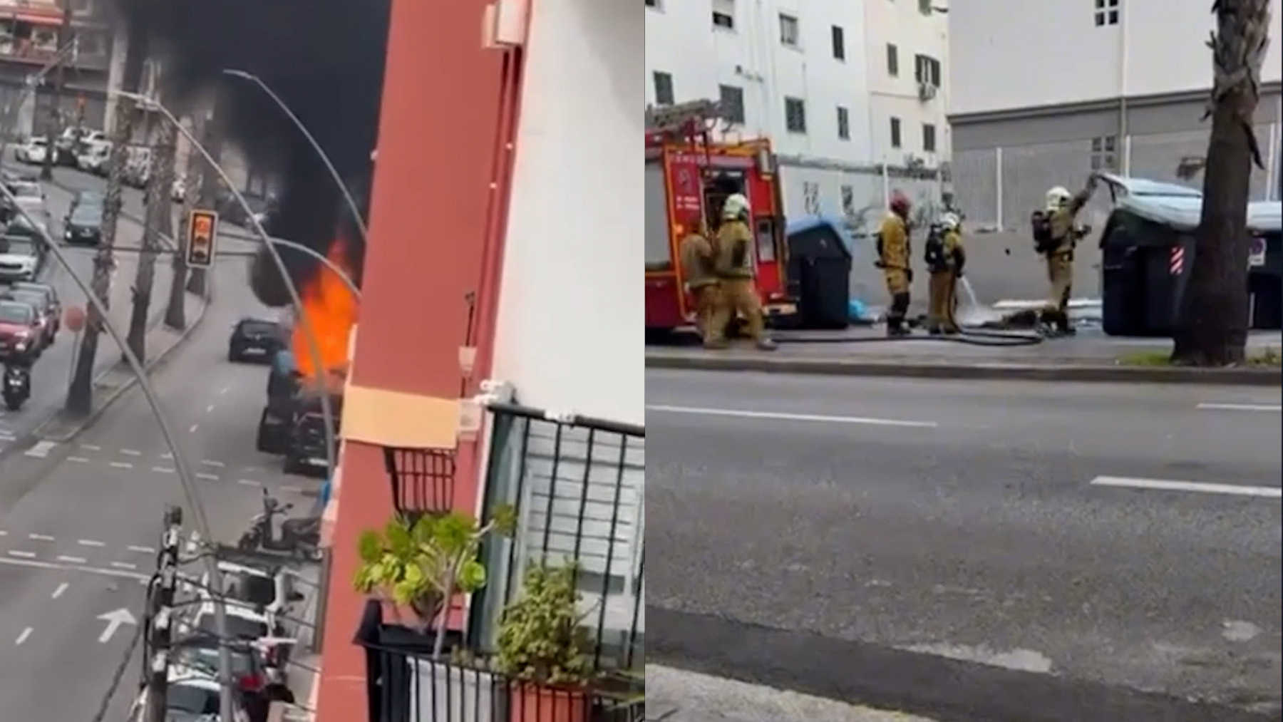 Alarma en Palma por el incendio de varios contenedores en la calle General Riera