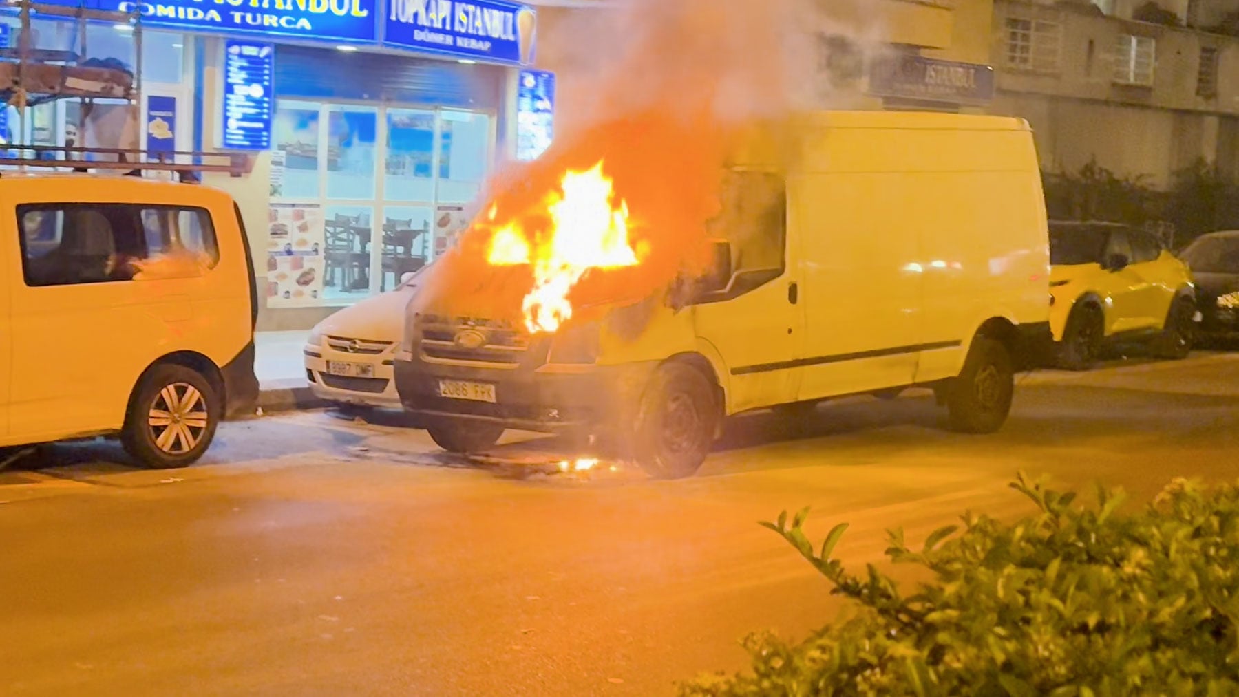 Aparatoso incendio en Palma: una furgoneta acaba envuelta en llamas tras sufrir una avería en plena calle