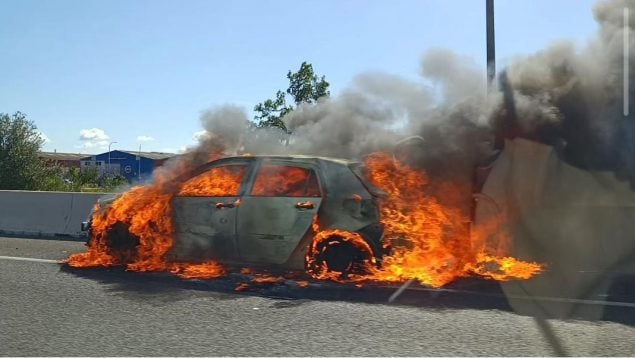 El incidente se ha producido en torno a las 11.30 horas, cuando, según la versión del conductor, ha detectado un fallo en el motor del vehículo que, en cuestión de segundos, ha derivado en un fuego de rápida propagación. Ante la situación, ha optado por detener el coche en el arcén, momento en el que el incendio del coche ya era visible y comenzaba a intensificarse.