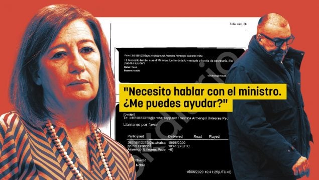 De acuerdo con el análisis forense de los dispositivos intervenidos, el 15 de junio de 2020 Armengol habría remitido un mensaje a Koldo García en el que solicitaba ayuda para contactar con el entonces ministro de Transportes, José Luis Ábalos: «Necesito hablar con el Ministro. Le he dejado mensaje a través de secretaría, ¿me puedes ayudar?».