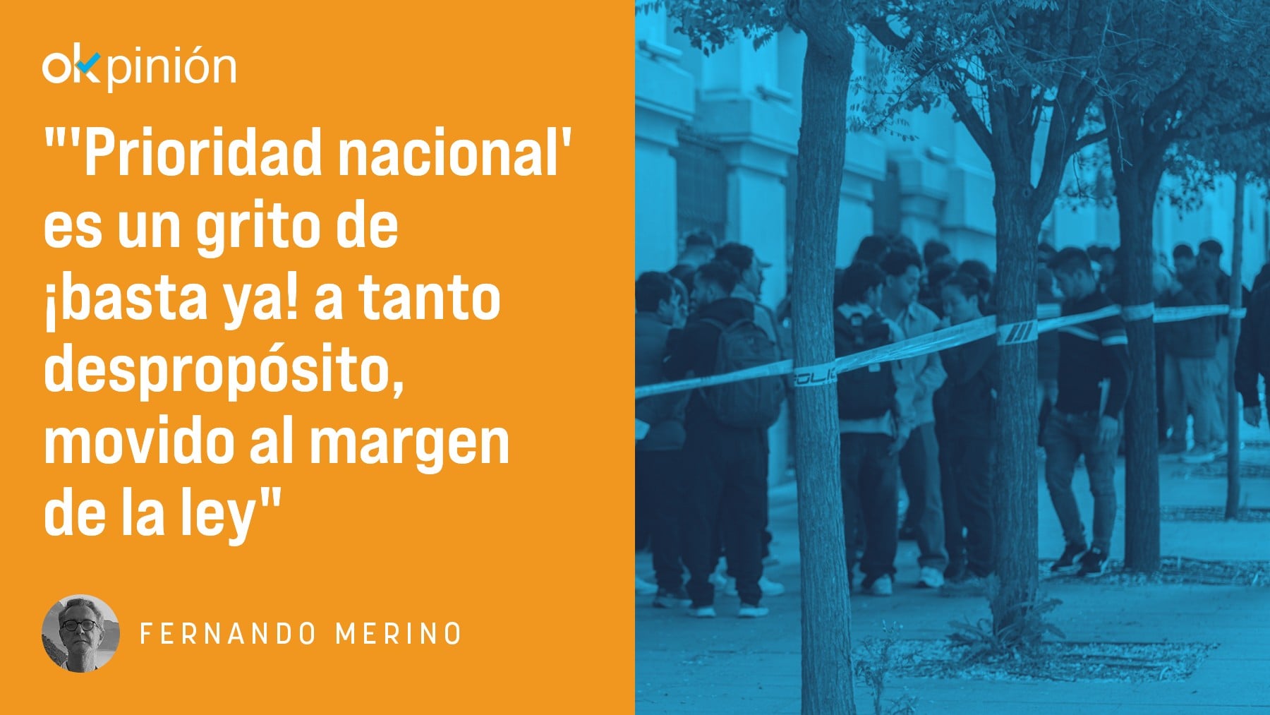 Hay mucho dinero público invertido en ello, sin tomar en consideración las necesidades de la población autóctona, que es la que paga impuestos, para satisfacer a los llegados ilegalmente. Incluso la Iglesia empieza a hablar de falta de sensibilidad a la dignidad humana, como si no fuera igual de digna la atención a los autóctonos, incluidos los ya nacionalizados después de su esfuerzo por integrarse y contribuir al crecimiento. Prioridad nacional es un grito de ¡basta ya! a tanto despropósito, movido al margen de la ley.