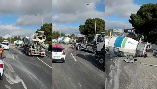 Un camión hormigonera pierde la carga y provoca el caos circulatorio en la Vía de Cintura de Palma
