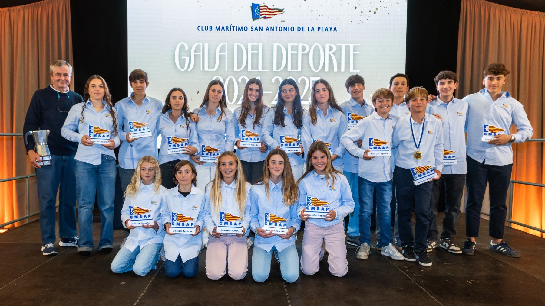 El Club Marítimo San Antonio de la Playa (CMSAP) celebró este fin de semana sus logros deportivos de la temporada 2025 en una emotiva gala que tuvo lugar en el restaurante Son Termes, en la que se entregaron los galardones a los mejores regatistas del año que han conseguido 5 podios internacionales, 12 nacionales y 23 autonómicos en diferentes categorías de vela.