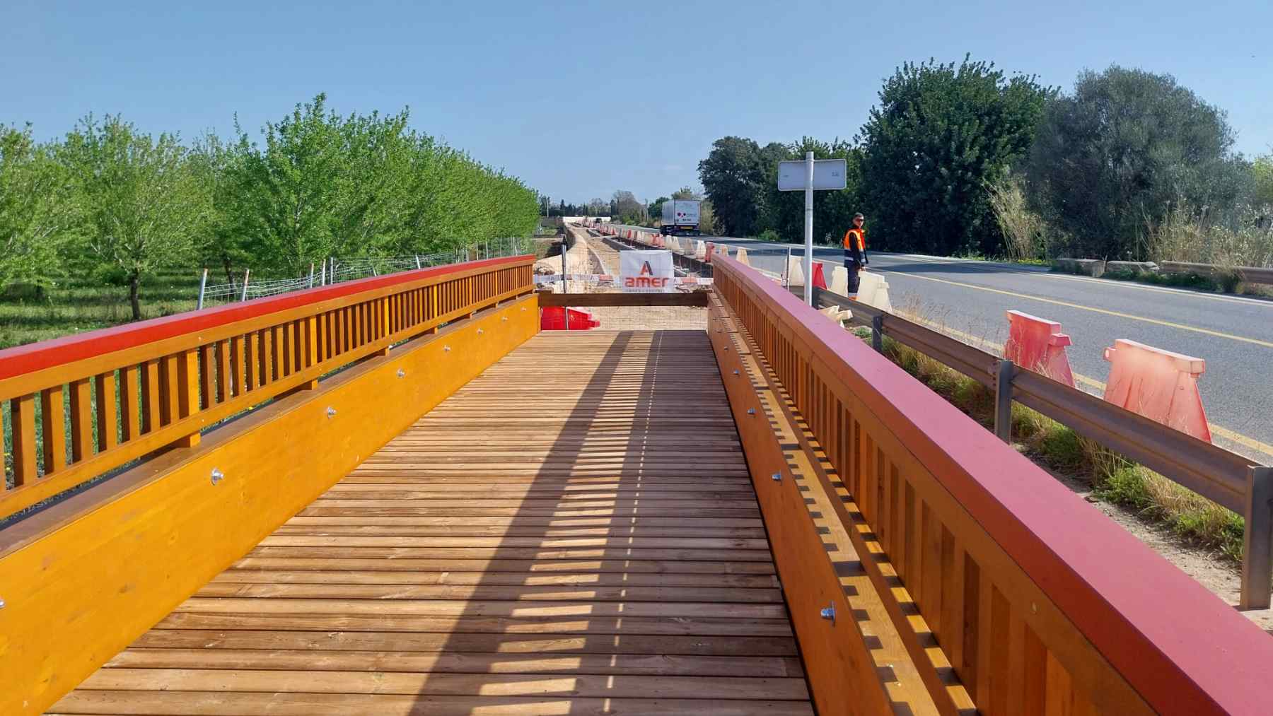 El Consell de Mallorca liderado por el popular Llorenç Galmés está instalando una gran pasarela de madera de unos 20 metros de longitud sobre el torrente de Aumadrà,una estructura que da continuidad al paseo cívico que se está construyendo en la antigua carretera Ma-13A para unir los municipios de Inca, Lloseta y Binissalem. Según la institución insular, supone un paso adelante en la movilidad sostenible de la comarca del Raiguer.