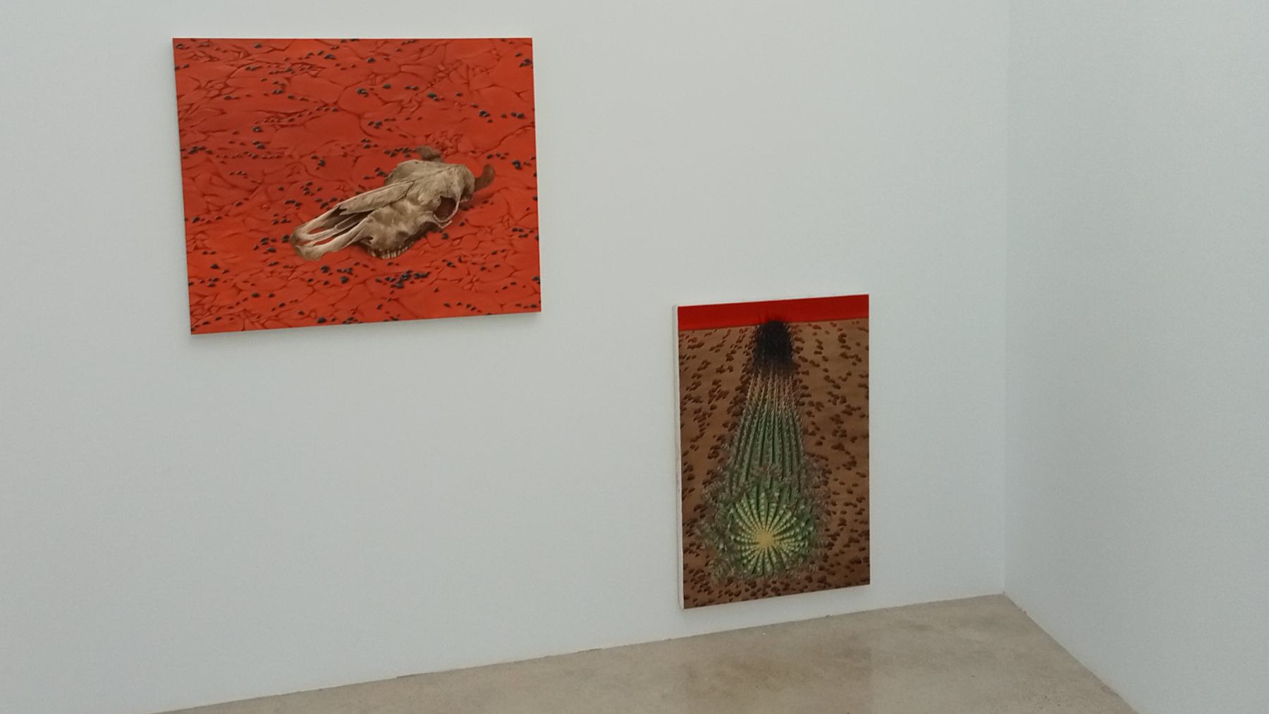 En esta exhibición el artista, como dice la nota de la propia galería, “utiliza el enigmático proceso de la pintura para expresar su asombro por el espíritu queer al transmutarse en figuración y abstracción. Los cuadros que componen Enigma, atractivos y fascinantes en su superficie, están construidos con un vocabulario limitado de imágenes que, cuando se colocan en diferentes relaciones, a menudo inesperadas, construyen escenas desconcertantes”. Las composiciones cogen un tinte cuasi místico, muy sugerente, dado que uno vislumbra la carga de simbología que portan y que a poco que uno se interne alcanzará a desentrañar. Sin ir más lejos, las imágenes reincidentes del desierto de Arizona, donde Dodge se educó, que nos trasladan un paisaje desolado e inhóspito, hacen referencia a la vivencia de la homosexualidad como experiencia intransferible y de arduo y solitario trasiego, así como a “la necesidad de enfrentarse al deseo de la cultura dominante de aplanar la identidad queer a ideales esterilizados, ruidosos y normativos”, en palabras de Sasha Bogojev.