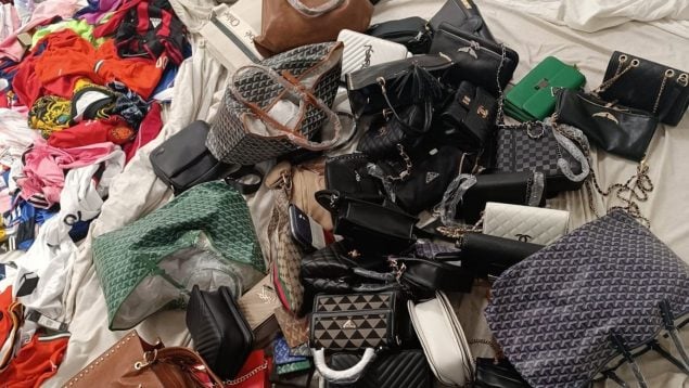 Entre los productos falsos requisados había camisetas deportivas, porta-tarjetas, imanes, bolsas pequeñas, pañuelos, gorras, cinturones, bandoleras, monederos, carteras, gafas y mochilas.