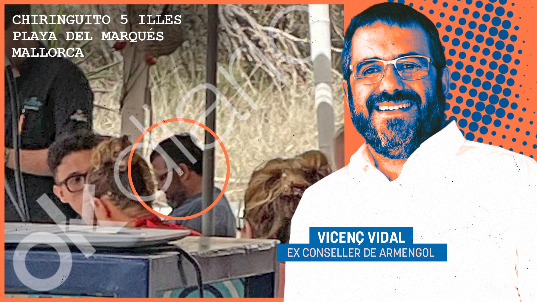 El diputado independentista antichiringuitos de Sumar Vicenç Vidal se pone las botas en el de la playa del Marqués en Mallorca, en uno de estos establecimientos de primera categoría llamado 5 Illes.