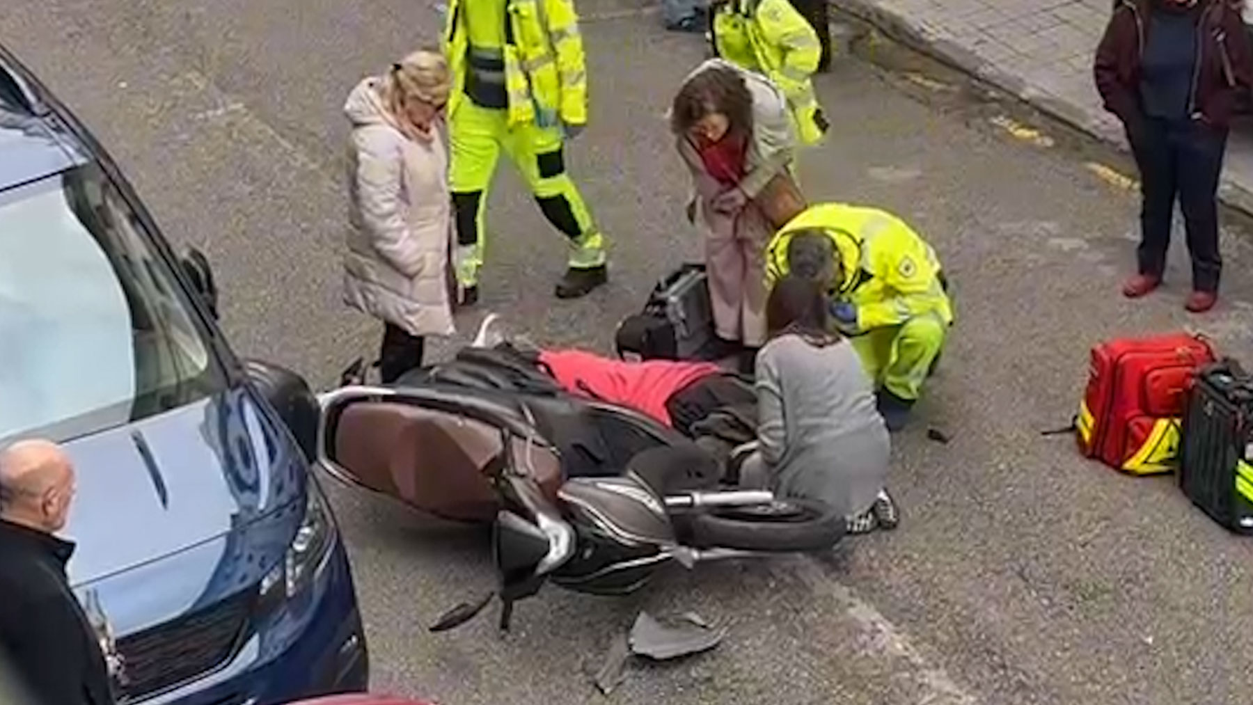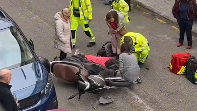 Tras el impacto, el hombre quedó tendido sobre la calzada, con el casco puesto, visiblemente dolorido, y comenzó a quejarse de una de sus piernas. Varios testigos presenciales relataron que el herido sufría fuertes dolores y que sus gritos de auxilio eran claramente audibles, lo que generó momentos de gran tensión y preocupación entre los viandantes y conductores que se encontraban en la zona.