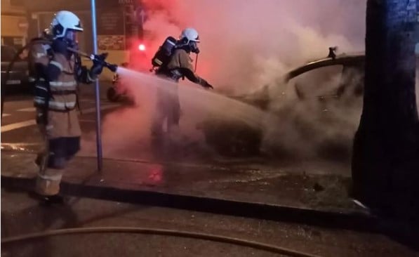 13 coches y una moto se incendian de madrugada en el barrio de El Terreno