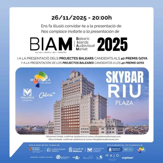 El evento, organizado por BIAM Audiovisual, incluyó también la presentación de la programación del BIAM 2025, que se desarrollará en dos sedes del archipiélago. La primera cita tendrá lugar en Menorca los días 1 y 2 de diciembre, gracias a la colaboración de la Fundació Foment del Turisme de Menorca y de la Menorca Film Commission; mientras que la segunda se celebrará en Calvià, Mallorca, los días 16 y 17 de diciembre, de la mano de la Fundació Calvià 365 y del Departamento de Cultura del Ayuntamiento de Calvià. Esta doble convocatoria reafirma el compromiso de BIAM Audiovisual con la descentralización y el fortalecimiento del sector en todas las islas.