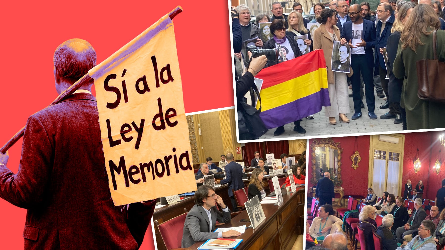 En sus escaños, los diputados del PSOE y de Més per Mallorca y Més per Menorca han exhibido imágenes de personas asesinadas durante o tras la Guerra Civil española. Esta vez no ha habido performance de camisetas de Aurora Picornell.