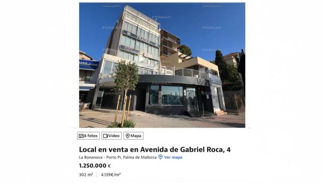 El local donde se encuentra la conocida discoteca Velvet de Palma está en venta. El anuncio, que se puede encontrar en el portal inmobiliario Idealista, oferta por un total de 1.250.000 euros este codiciado espacio de la primera línea del Paseo Marítimo.