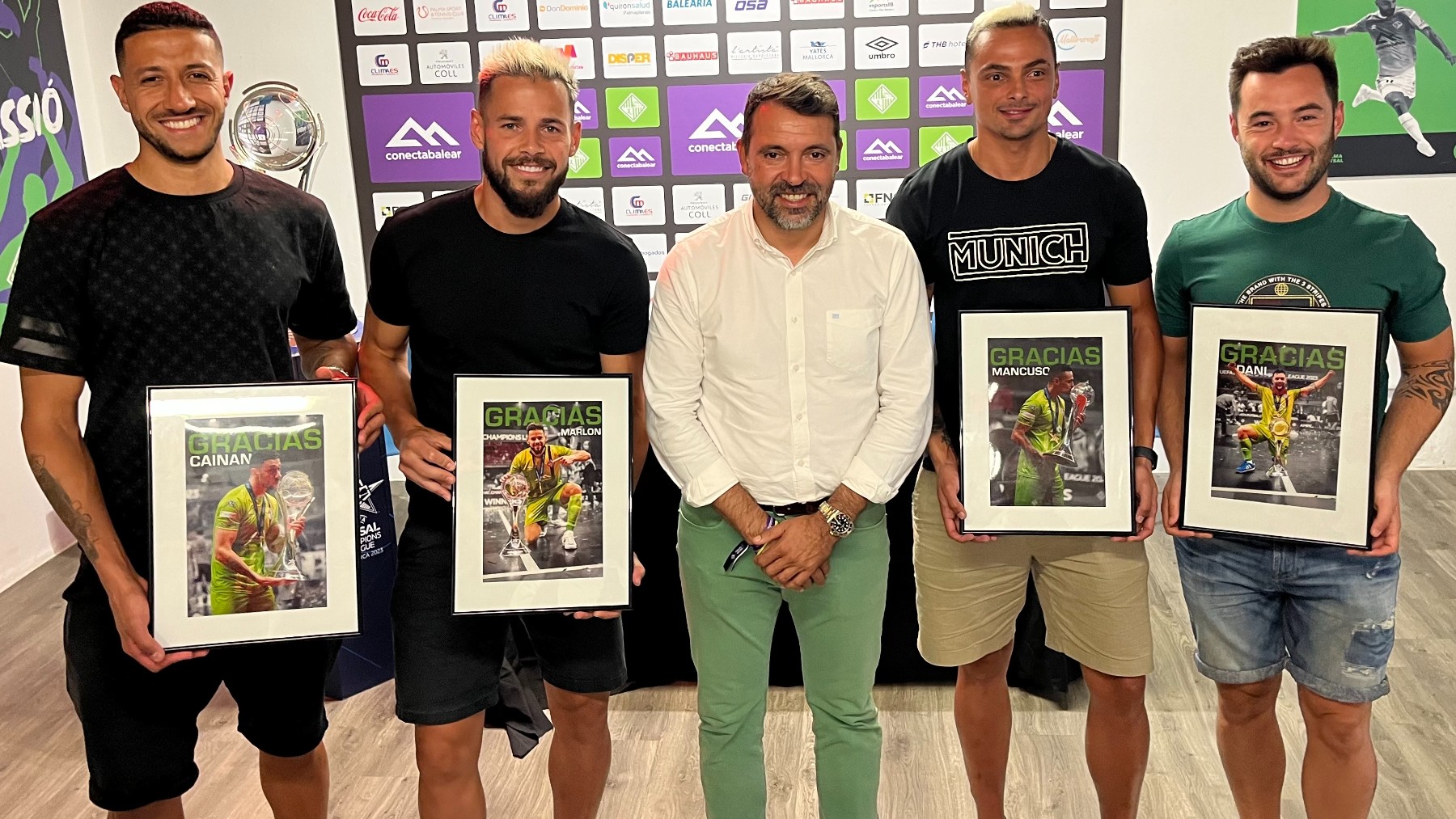 El Mallorca Palma Futsal puso el punto y final a la temporada con el acto de despedida a Marlon Oliveira, Diego Mancuso, Cainan y Dani Saldise, que abandonan el club junto a Tomaz y Eloy Rojas. Los cuatro pisaron el Palau Municipal d’Esports de Son Moix por última vez para dar una rueda de prensa junto a José Tirado y recibir el agradecimiento del club con las palabras de su director general y con el cuadro con el que el club obsequia a todos los jugadores que se van de la entidad. En este caso, cada uno se llevó de recuerdo una foto suya con el título de la UEFA Futsal Champions League, el logro que ha marcado la temporada y el título más importante de cada uno de ellos.