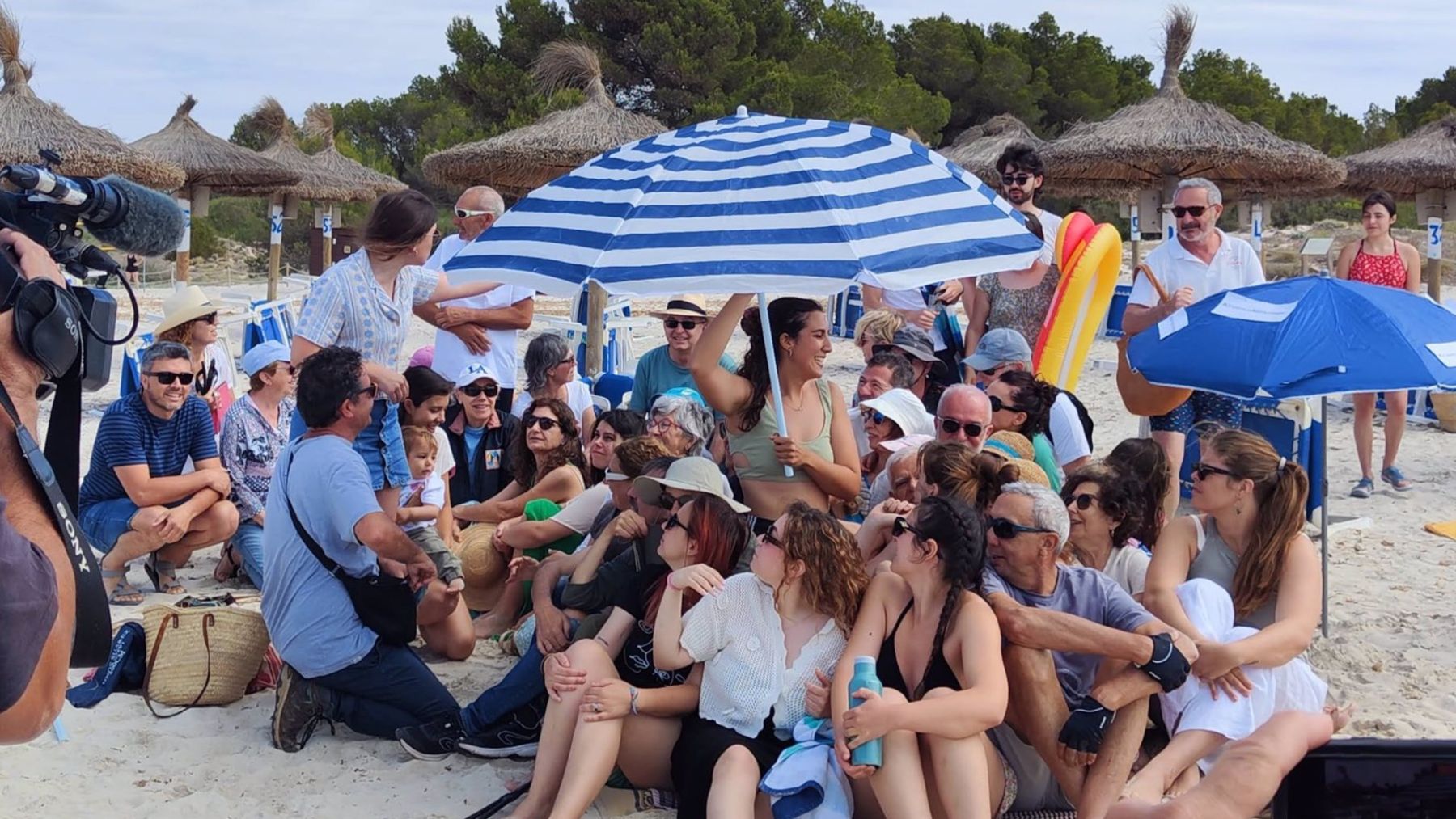 Un grupo de bañistas se concentra sobre la arena de Sa Ràpita para reivindicar "el derecho a ir a la playa tranquilamente"