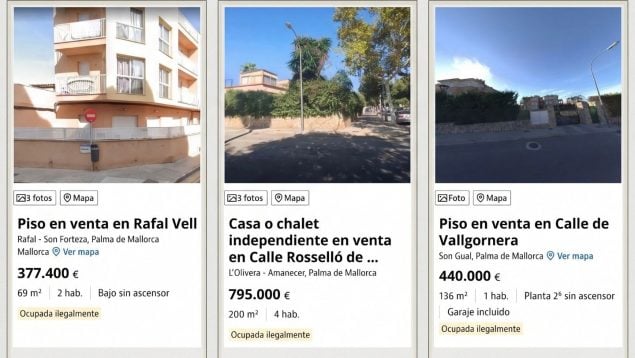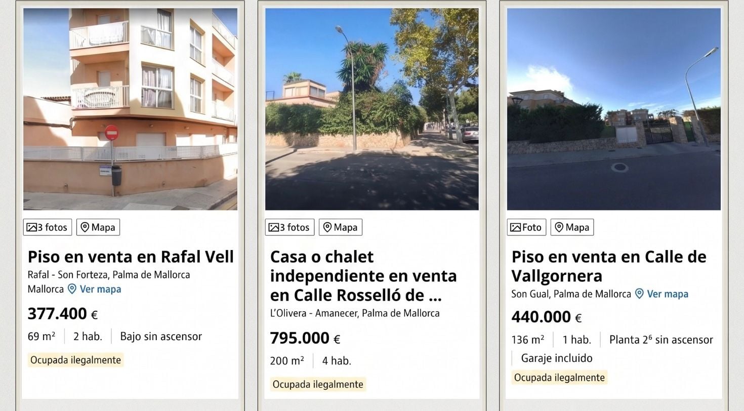 La fotografía actual resulta tan llamativa como inquietante. En el barrio del Rafal Vell, un piso de apenas 69 metros cuadrados se oferta por 377.000 euros pese a estar ocupado por una familia con niños pequeños. No es un caso aislado. En una céntrica calle de la barriada del Amanecer, una vivienda alcanza los 795.000 euros en condiciones similares. Y en la calle Vallgornera, en Son Gual, otro piso okupado sale al mercado por 440.000 euros.