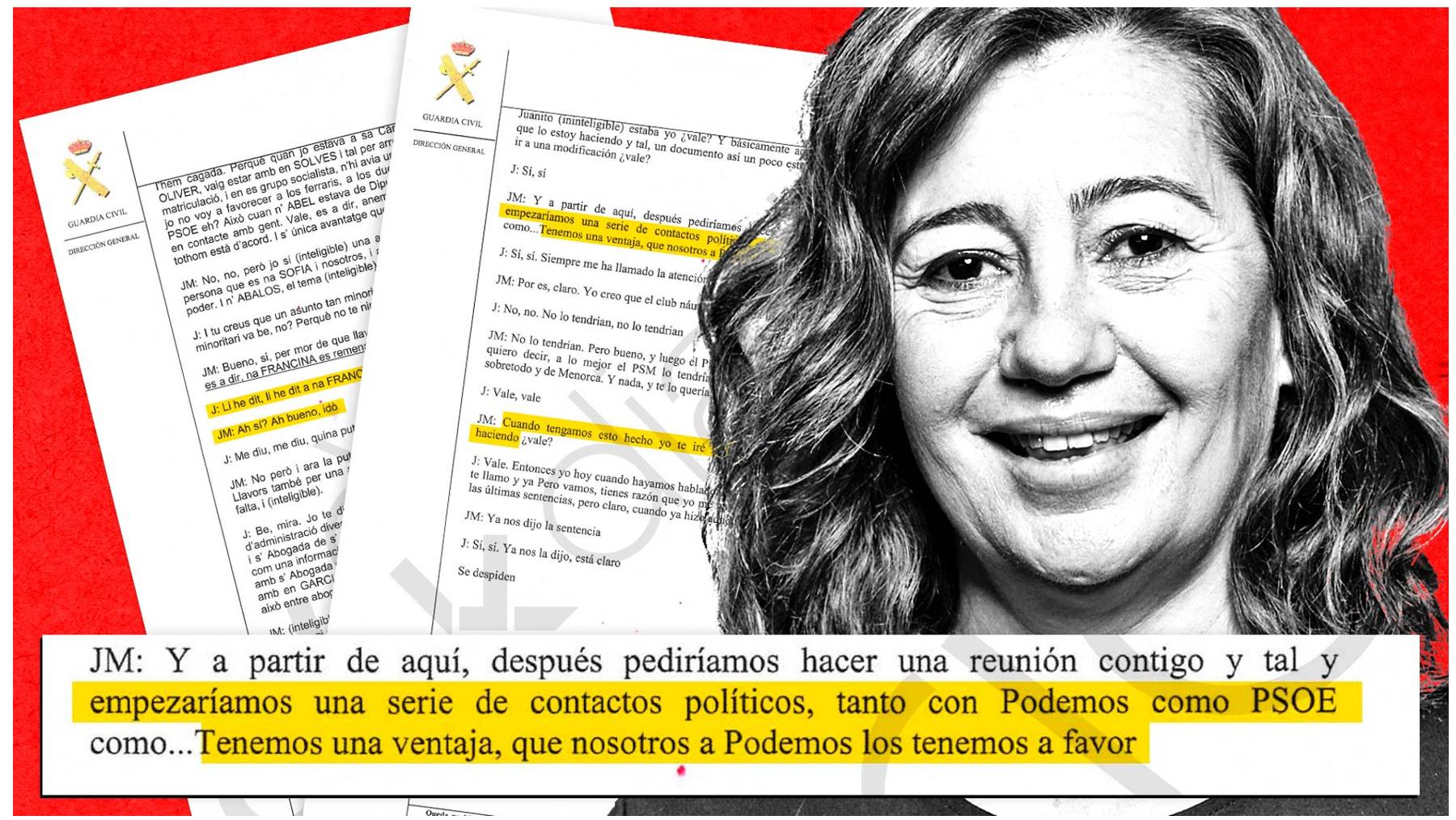 «Ya se lo he dicho a Francina, ya se lo he dicho», le indicó Gual a Costa en una conversación captada a instancias judiciales por la Guardia Civil pasadas las seis y media de la tarde del 25 de mayo de 2020 , mes y medio antes de que el primero fuera detenido junto a gran parte de la cúpula de la APB. En esa conversación, Costa deja claro a Gual de Torrella que el objetivo es «implicarla [a Armengol] en la modificación porque ella puede apretar».
