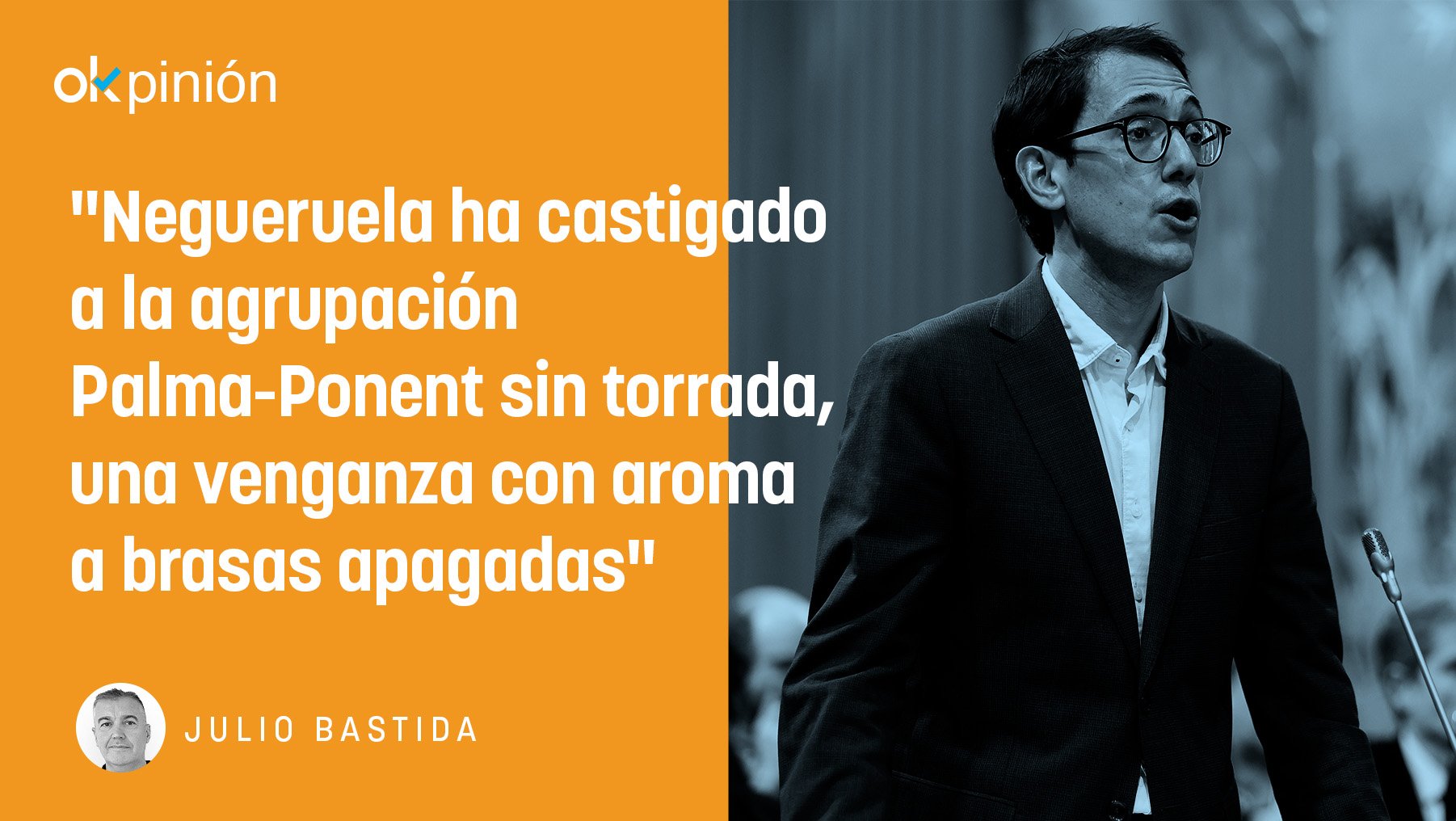 El nuevo dirigente ha decidido ejercer un estilo que recuerda mucho a esos regímenes donde la gastronomía se permite solo si no amenaza el poder del líder supremo. Y es que Negueruela tiene atravesada a la antigua dirección de Ponent, a la que culpa del nada despreciable 40% de rechazo interno que obtuvo en mayo. Así que, en un gesto de fina ingeniería política, ha decretado lo que debe de ser la mayor sanción concebida en el socialismo balear contemporáneo: quedarse sin torrada preconstitucional. Cortar cabezas es muy siglo XX; cortar chistorras, mucho más eficaz.
