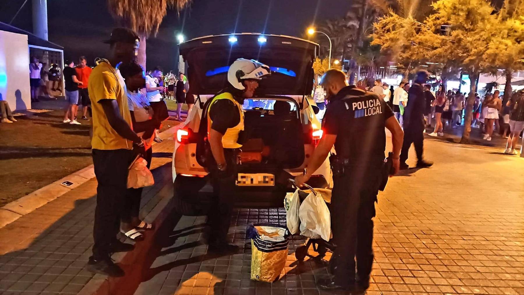 Asimismo, se realizaron varias actuaciones contra la venta ambulante, tanto por venta de alcohol como por venta de marihuana u objetos de marca falsificada. En una de las actuaciones se incautaron 85 gorras y sombreros, al tiempo que se imputó a una persona por un presunto delito contra la propiedad intelectual y se denunció a otra por hacer trile.