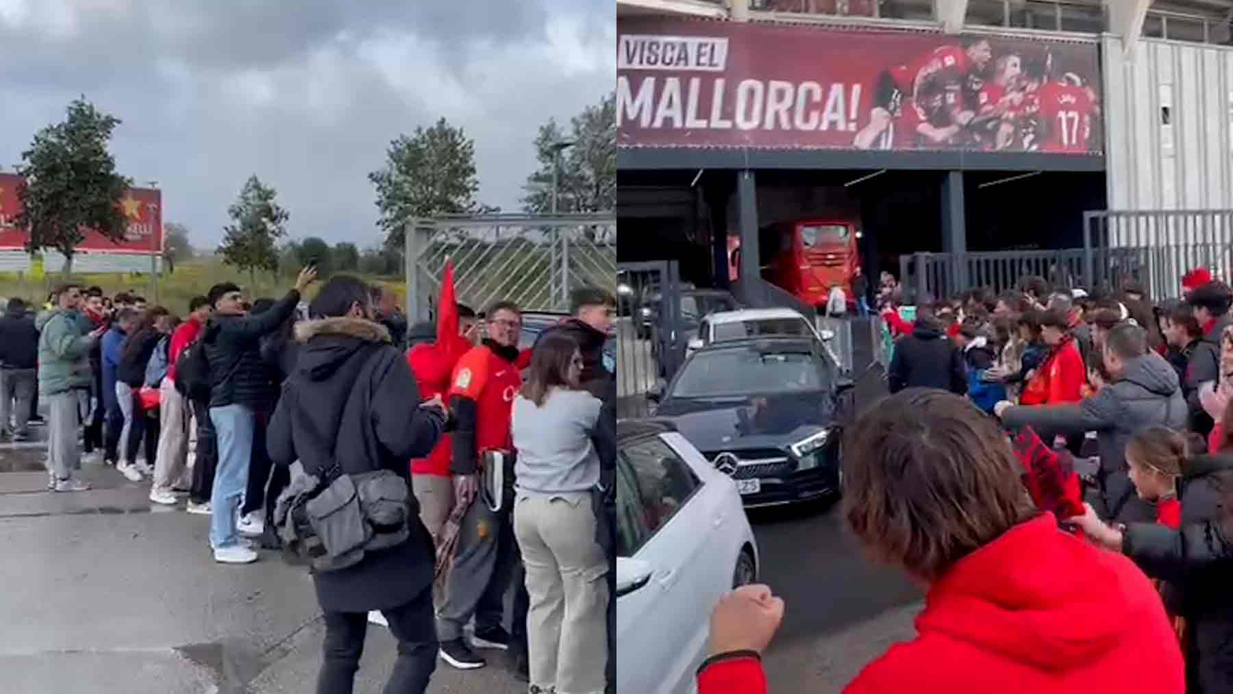 Un centenar de aficionados del Mallorca han recibido al equipo por todo lo alto