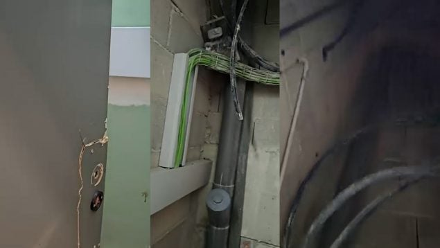 OKBALEARES ha tenido acceso a un vídeo en el que se ve un lavabo justo al lado de una pequeña sala repleta de cables y un cuadro eléctrico. Todo aquel que quiere hacer sus necesidades antes de coger un vuelo y se topa con este baño tiene que hacerlo rodeado de cables.
