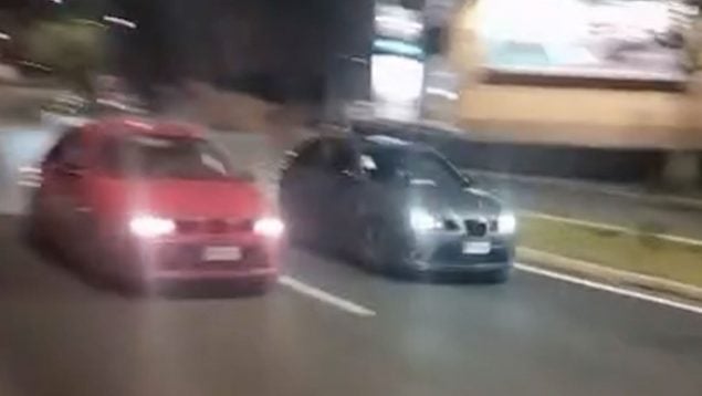 En las imágenes que publica OKBALEARES se ven dos coches de marca Seat compitiendo entre sí para ver quién es más veloz. Los turismos vienen a poca velocidad desde la rotonda de Can Blau y en un determinado momento pisan el acelerador, dejando una estela de ruido y humo negro que emana del tubo de escape.