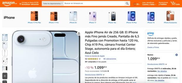 Apple iPhone Air 256GB: de 1.219 euros a 1.099 euros
