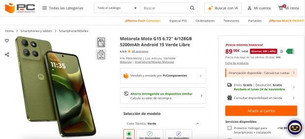 El Motorola Moto G15 está en este Black Friday rebajado un 40%, lo que supone un ahorro de 60 euros para las personas que quieran hacerse con este smartphone que está a 89 euros en mínimos históricos.