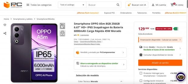 El OPPO de 256 GB lo puedes encontrar por 129 euros en este Black Friday 2025. Con motivo de este día, te podrás ahorrar un 23% en este producto.