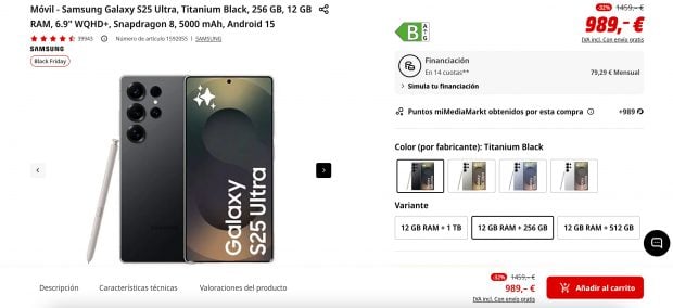 Samsung Galaxy S25 Ultra: de 1459 euros a 989 euros