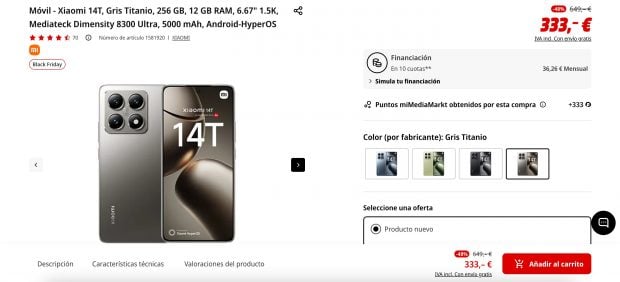 El Xiaomi 14T ha sido uno de los móviles más vendidos en los últimos años y en este Black Friday lo puedes encontrar a un módico precio de 333 euros. La oferta en este Black Friday 2025 es casi de un 40%.