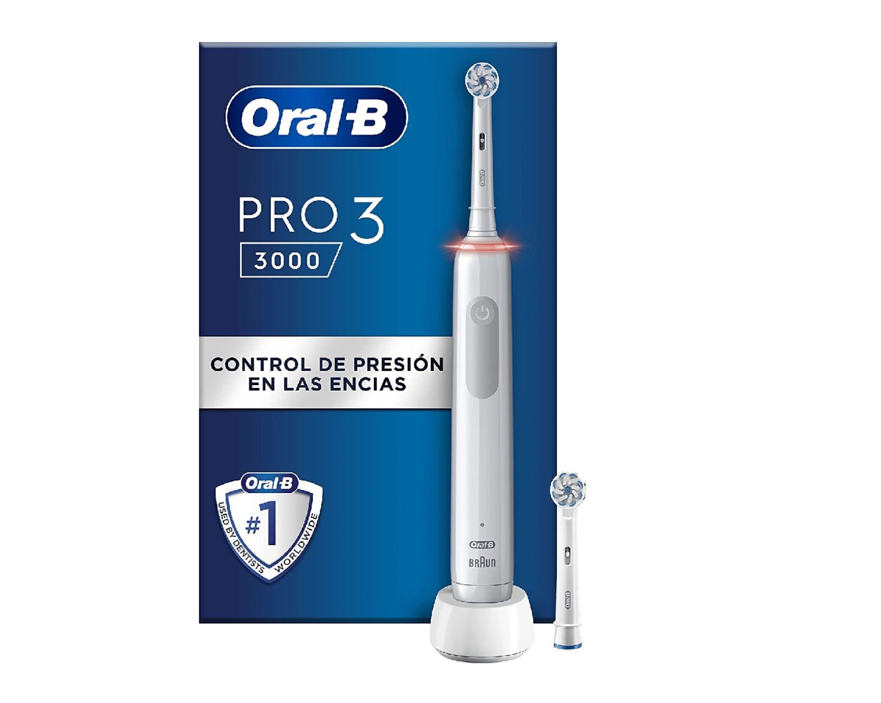 En la sección de tecnología de Amazon encontramos también este cepillo de dientes modelo Oral-B Pro 3 con mango Recargable y sensor de Presión, Tecnología Braun y 2 cabezales de recambio. Tiene un descuento del 44% de modo que el precio ahora es de 44,95 euros.