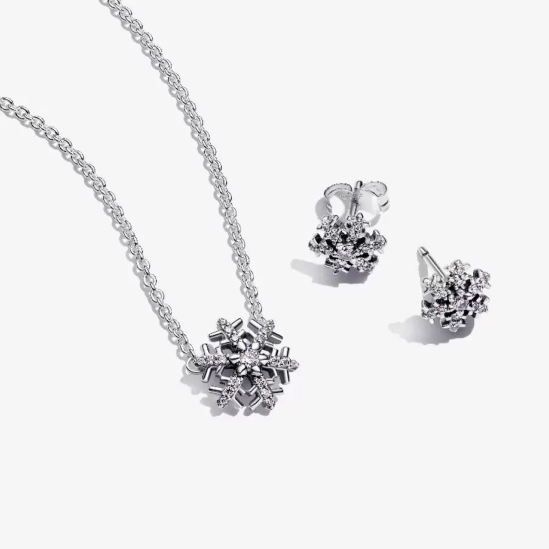Conjunto de Regalo Copo de Nieve. Para un regalo más completo, tienes los pendientes acompañados del collar y colgante a juego. El precio es de 108 euros pero se rebaja a 86,40 euros.